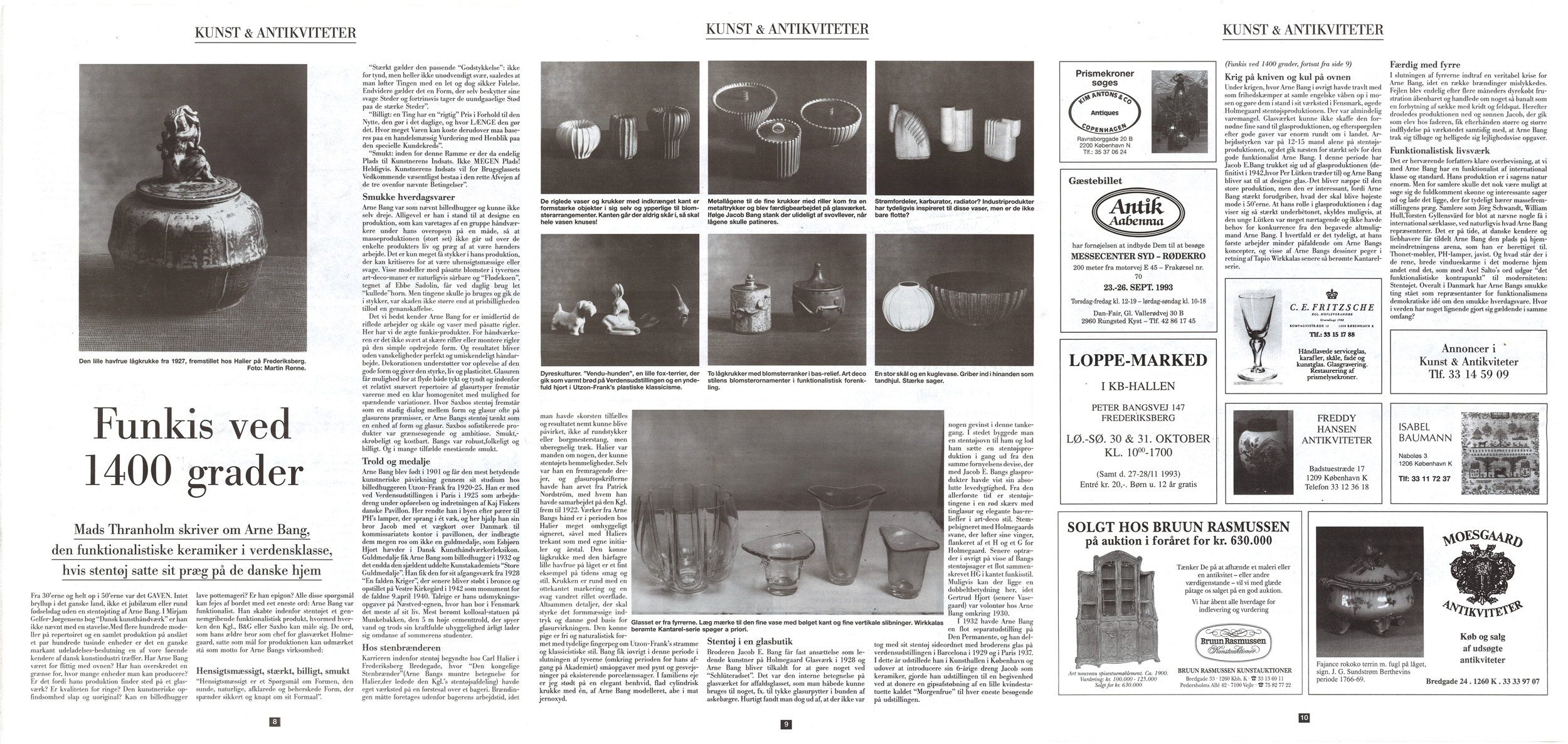 Mads Thranholm: ”Funkis ved 1400 grader” Kunst & Antikviteter, 8. Sep. 1993. Klik på billedet for at se hele artiklen.