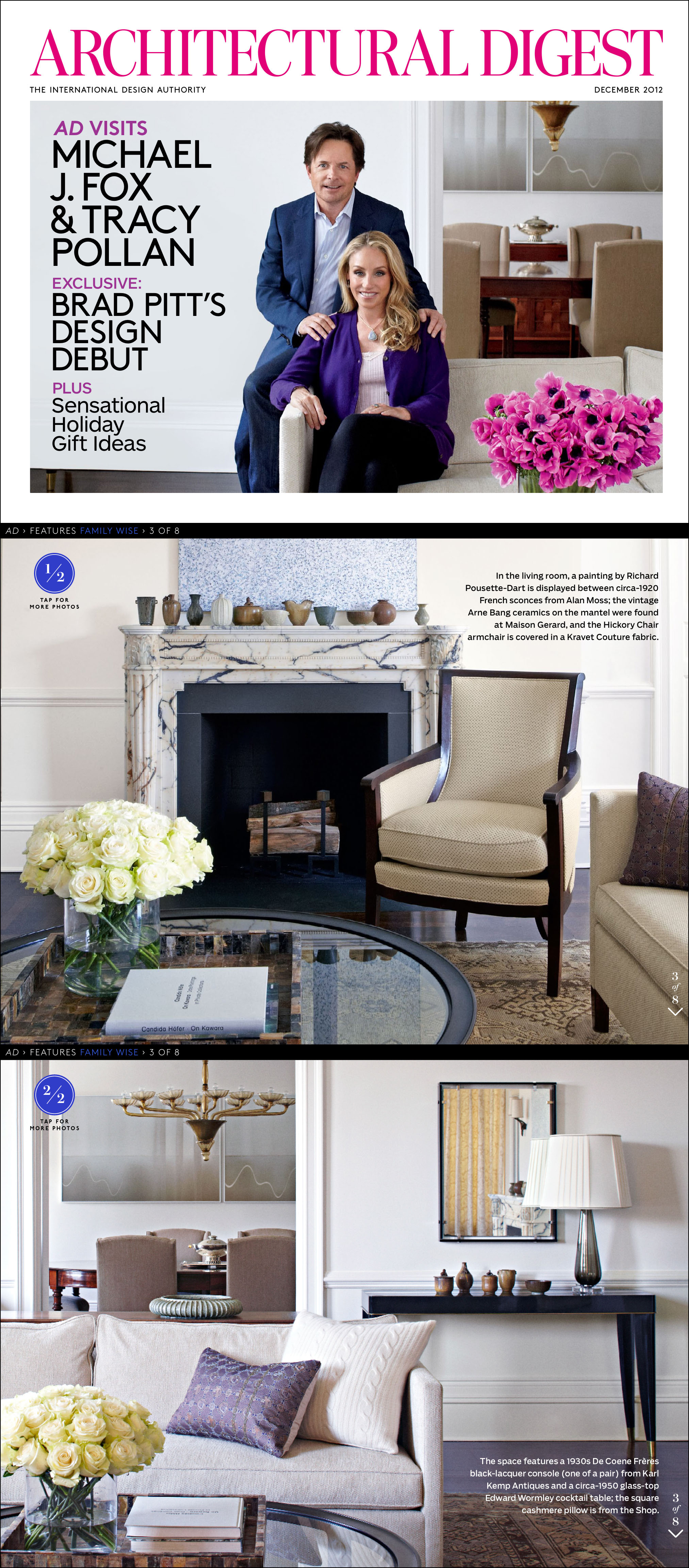 Architectural Digest, med glimt fra den amerikanske skuespiller Michael J. Fox’s private hjem, og hans samling af Arne Bang stentøj. Klik på billedet for at se hele artiklen.